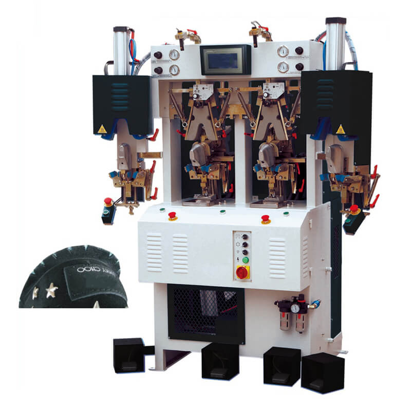 The machine for thermoplastic and thermo board counter moulding for stitch down process shoes.